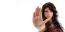 College student showing ok sign on an isolated white background.
