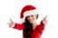 Standing young woman wearing Christmas hat on an isolated white background.